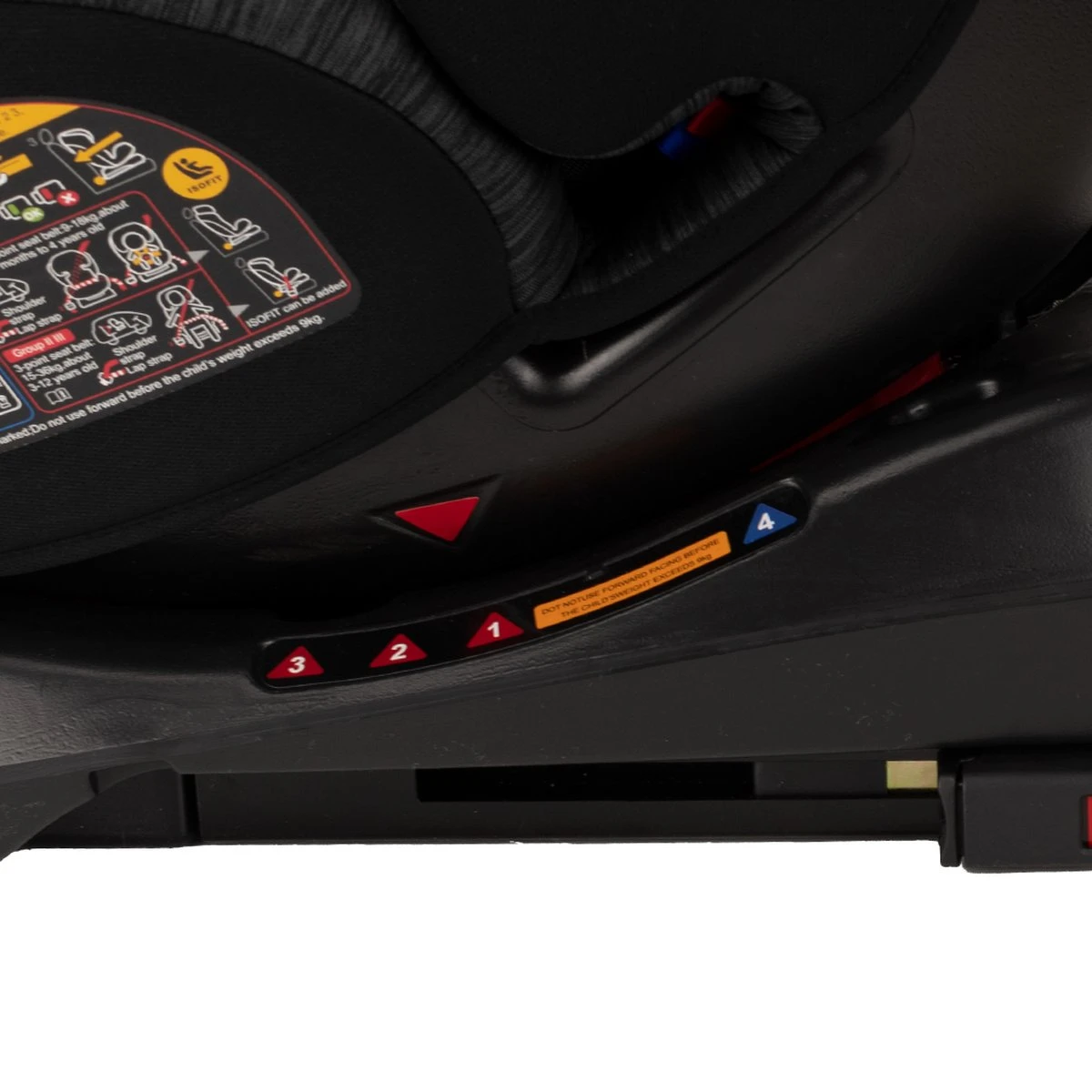 - Zitting in 4 posities verstelbaar: 3x voorwaarts, 1x achterwaarts