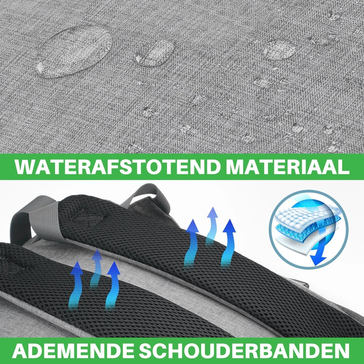 De tas is waterafstotend en daarom is het geen probleem om de tas in de regen te dragen. Daarnaast is de binnenzijde van de verzorgingstas gemakkelijk af te nemen met een vochtige doek.