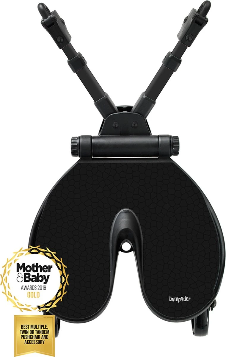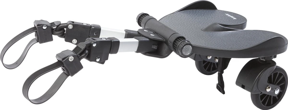 De Bumprider is het meest universele meerijdplankje in zijn soort. Door de rubberen wieltjes geeft het extra meerijd comfort.