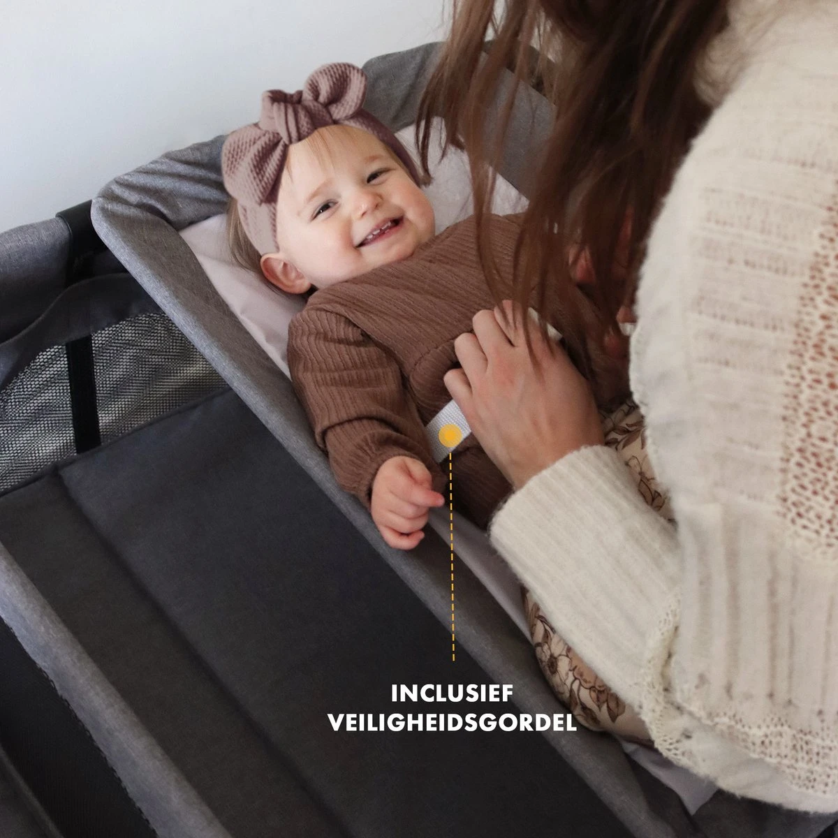Dit alles-in-één campingbed is voorzien van een complete plek om je kindje te verschonen en bevat daarnaast handige mandjes om luiers en andere benodigdheden in op te bergen. De eerste maanden kun je gebruik maken van de meegeleverde bodemverhoger. Zo is ver bukken om bij je kindje te komen niet nodig! Wanneer het kindje zelfstandig kan zitten, gebruik dan de normale bodem.