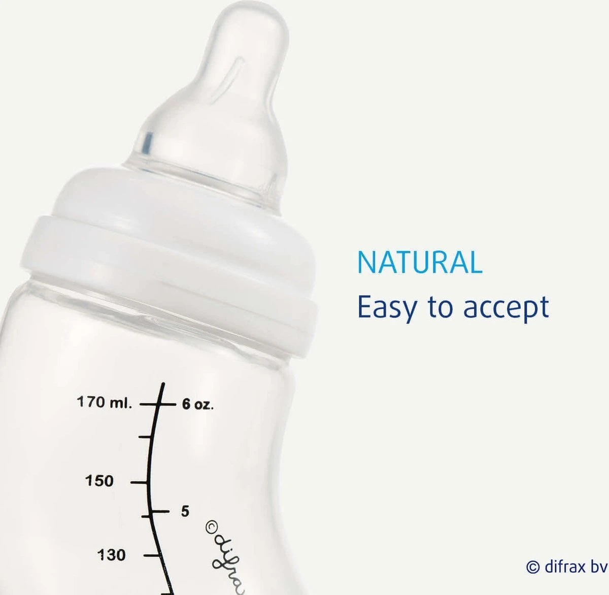 De Difrax Flessenspeen Natural Large voor de smalle S-fles heeft een zachte ronde tepelvormige speen die lijkt op de moederborst. Hierdoor is borst- en flesvoeding goed te combineren.