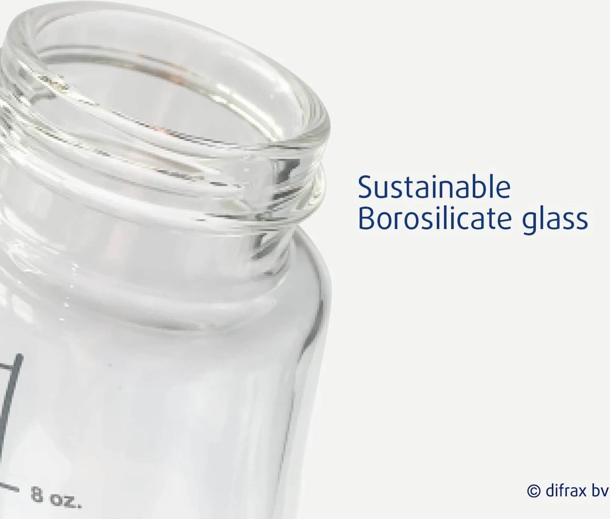 Deze best verkochte glazen babyfles met anti-colic werking is geschikt voor maximaal 250 ml voeding en te gebruiken vanaf de geboorte. Door het anti-colic systeem in de bodem en de S-vorm van de fles, worden voeding en lucht niet met elkaar vermengd, hierdoor blijven vitamines en belangrijke voedingsstoffen behouden. De S-fles van glas is gemaakt van duurzaam borosilicaatglas. Door het gebruik van borosilicaatglas is de glazen s-fles licht en heeft hij een zeer lange levensduur. Inclusief zachte Difrax flessenspeen Natural Small met extra grip voor je kindje. Let op: Controleer voor elk gebruik of het luchtgaatje in het midden van het ventiel open is door er enige malen in te knijpen.