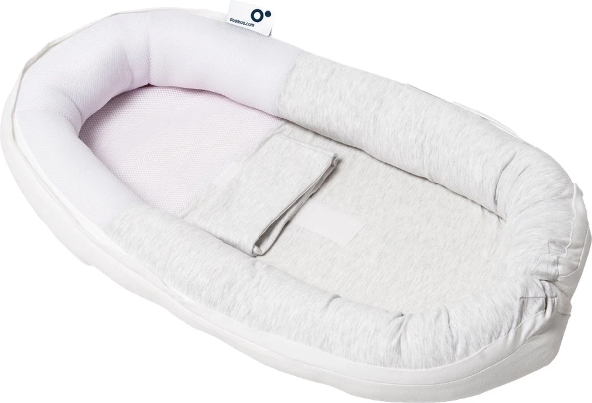 Knus en veilig babynestjeIdeaal om in te relaxen of te slapen. De doomoo Cocoon creëert een op maat gemaakt plaatsje voor je baby en bezorgt hem een veilig gevoel bij de overgang van mama’s knusse buik naar z’n eigen bedje. Het nestje is gemaakt van de zachtste materialen: biologische katoen en ademend 3D materiaal rond baby’s hoofdje. De afneembare gordel houdt baby veilig op zijn rug. Het nestje kan onderaan geopend worden, waardoor het geschikt is voor kindjes vanaf de geboorte tot ongeveer 8 maanden.• Superknus en comfortabel• Afneembare hoes• Groeit mee
