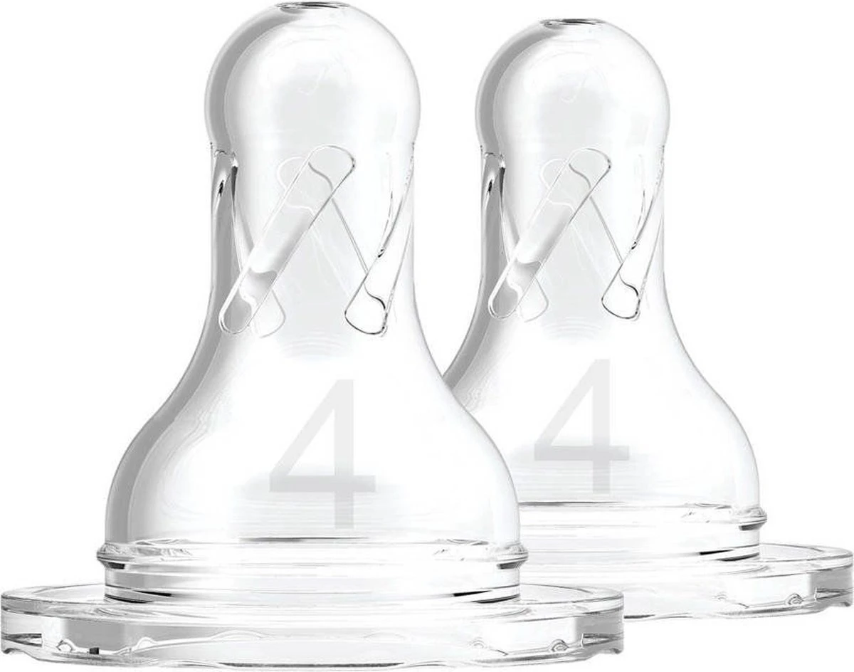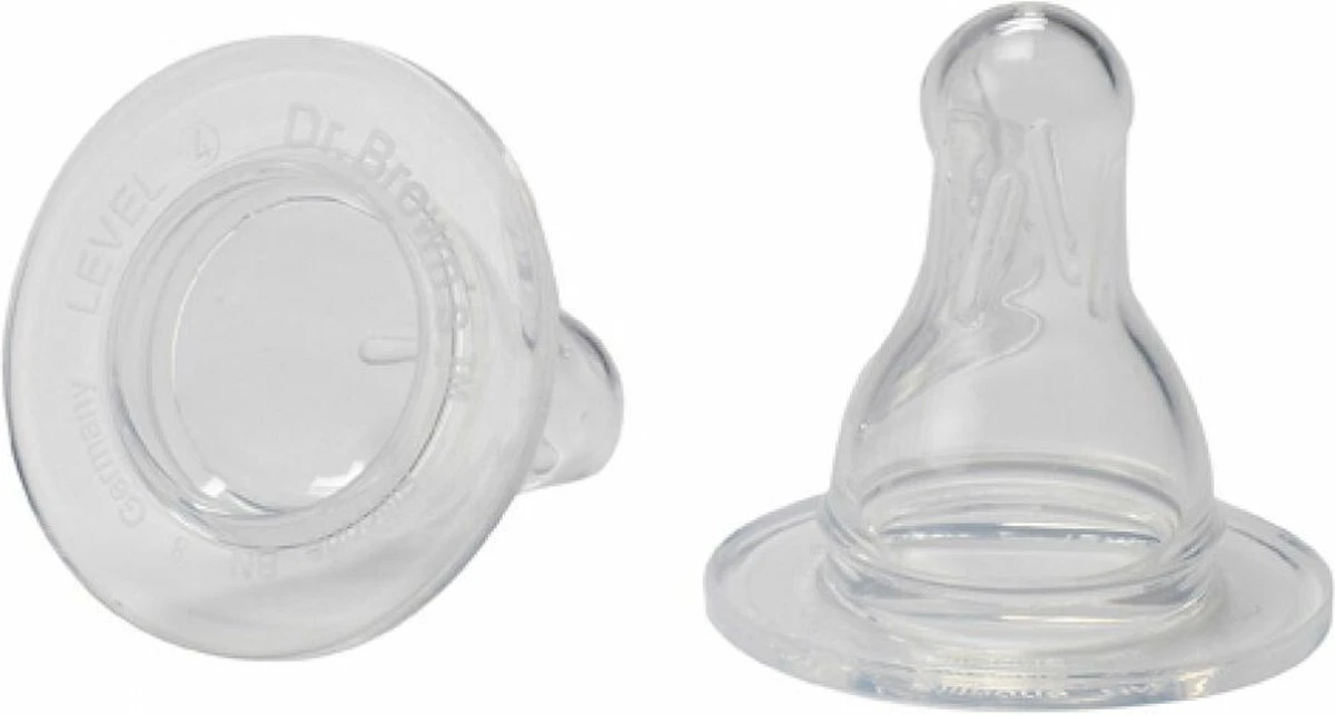 Vanaf ca. 9 maanden. Snelste doorstroming. Speciaal voor pap en voor grove dikkere voeding (zoals johannesbroodpitmeel). Ook geschikt voor gulzige eters, voor wie voorgaande fasen dus te traag gaan. De spenen van Dr. Brown’s zijn gemaakt van klinisch geteste siliconen. Door de zeer zachte textuur en speciale vorm liggen ze perfect in je baby’s mond. Vervang spenen elke zes weken, of eerder als ze tekenen van slijtage vertonen.
