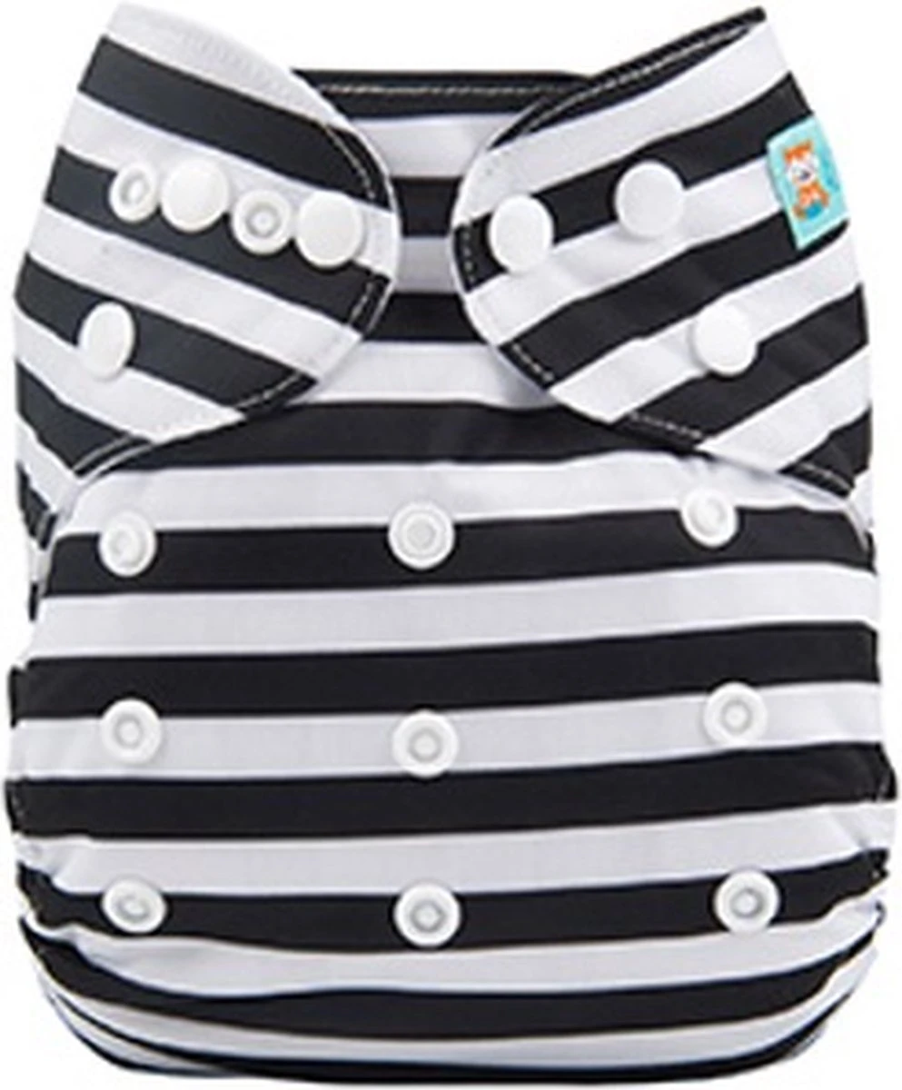 - One size fits all, u kunt de luier aanpassen aan de gewenste maat (S, M of L) door op verschillende rijen knopen op de luier te klikken.