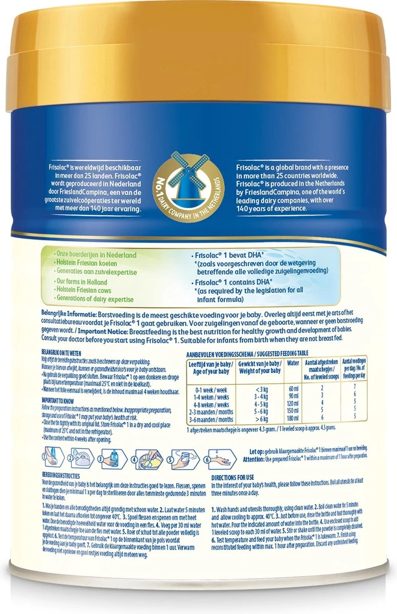 - Overleg altijd eerst met je arts of het consultatiebureau voordat je Frisolac 1 babyvoeding gaat gebruiken.