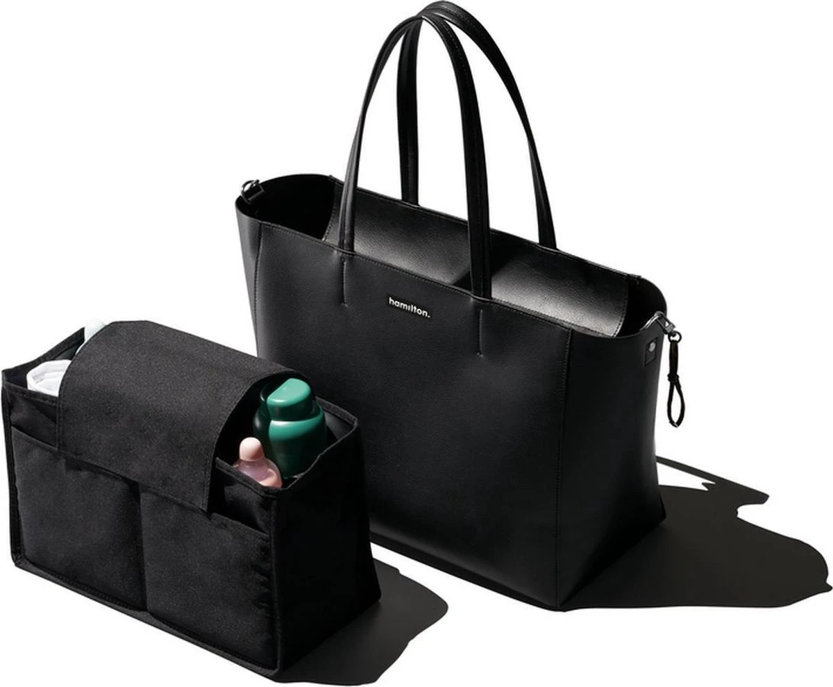 Het Hamilton-model is gemaakt van hoogwaardige materialen en fittingen. Ze zijn robuust, duurzaam en gemakkelijk te onderhouden. Oppervlaktevuil wordt verwijderd met een vochtige doek. De externe hoes (in feite de tas) en de interne verwijderbare organizer hebben een vergelijkbare eigenschap. Het is gemaakt van afwasbaar materiaal, want het morsen van een mengsel of water uit een fles tijdens het lopen is heel gewoon. De handvatten in de tas zijn comfortabel en breed. Het materiaal glijdt niet weg en indien nodig kan de tas op de bedieningshendel van de kinderwagen worden bevestigd. De binnenruimte van de organizer is zeer vakkundig georganiseerd door de ontwerpers van het Nederlandse merk Hamilton. Voor koude of warme dranken is een speciaal compartiment voorzien, dat de eigenschap heeft van een thermoskan. Er is een apart vak voor wegwerpluiers. Er is ook een vak voor een tablet of mobiele telefoon, die sluit met een rits. Aan de buitenkant zijn er twee grote zakken die sluiten en zijn voorzien van een beschermende flap Het onbetwistbare voordeel van de Hamilton-tas is het speciale ontwerp, waardoor onbedoeld openen is uitgesloten. De Hamilton-tas is verkrijgbaar in het zwart, waardoor je een accessoire kunt kiezen dat past bij elke kleur van de Hamilton One Prime X1-kinderwagen (Hamilton Van Prime X1) en Hamilton One Sport R1 (Hamilton Van Sport R1).