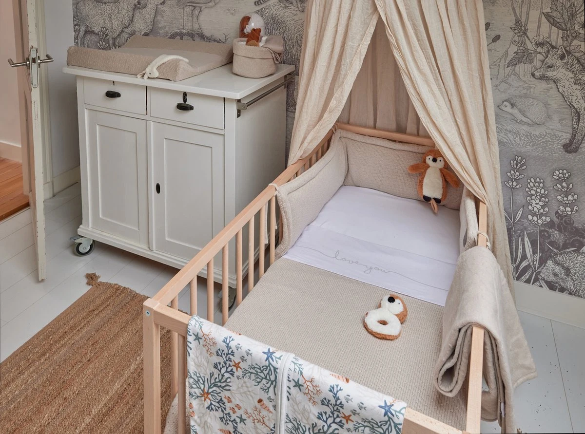 Je kunt het ook in de box als boxbumper gebruiken. Het staat knus en het matcht perfect met het bijpassende boxkleed.