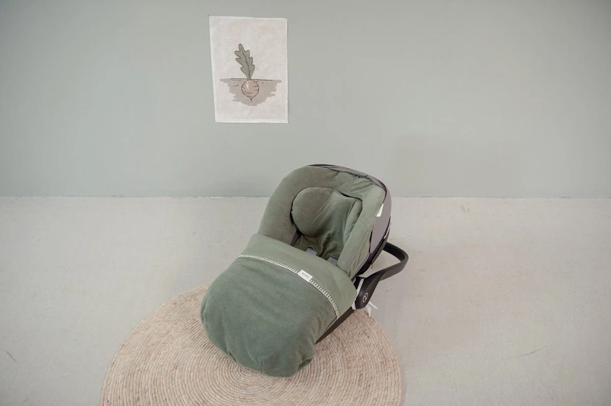 Dit met flanel gevoerde dekje past perfect over een autostoel 0+ of Cybex of Maxi-Cosi en houdt je kleintje lekker warm als je op stap bent. Door het elastiek aan de onderzijde blijft het dekje op zijn plaats en met de striksluiting kan je de deken snel en gemakkelijk op en af doen. Een onmisbaar product voor koelere dagen. Zo zit je kleintje er heerlijk bij en ga jij stylish op pad!