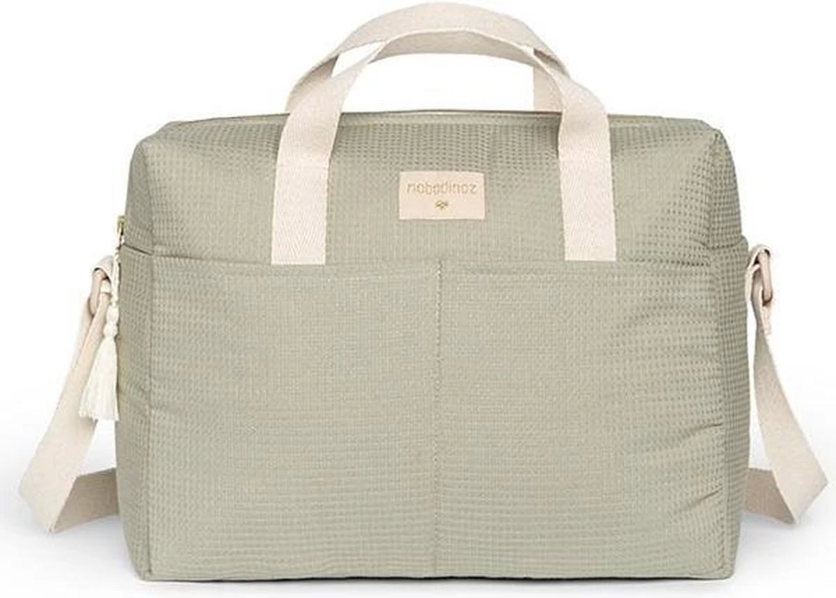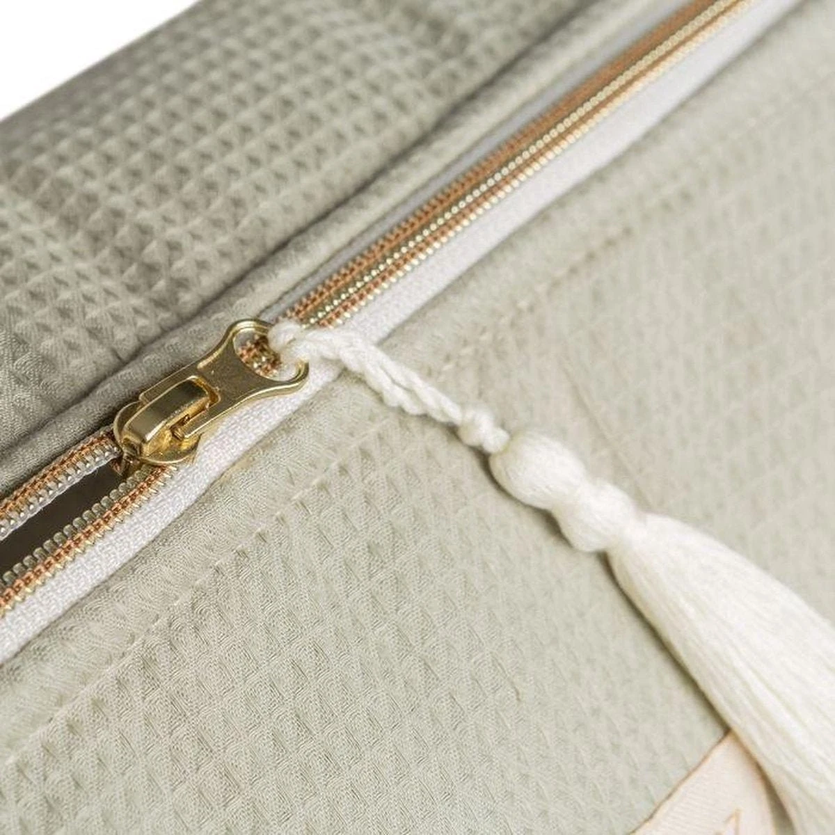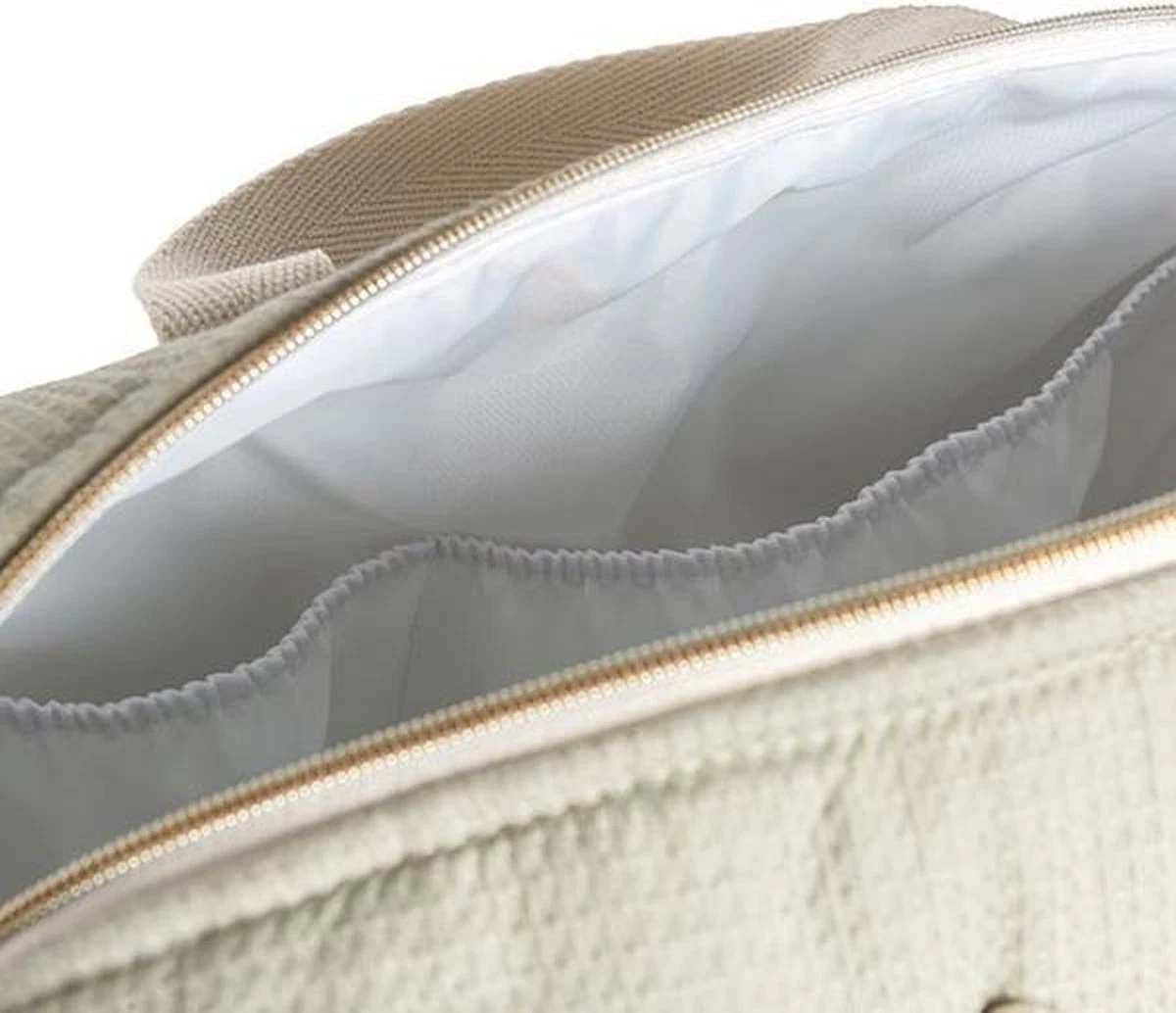 De Gala-luiertas met honingraat van biologisch katoen heeft het ideale formaat en kan aan de kinderwagen worden bevestigd. Het is de perfecte tas voor dagelijkse gezinsuitjes, dankzij de waterdichte binnenkant en de twee binnenvakken kun je alle babybenodigdheden opbergen. De twee buitenzakken zijn perfect om op te bergen wat je nodig hebt binnen handbereik. Dankzij de gevlochten handvatten van katoen kun je hem aan je kinderwagen hangen of aan je schouder dragen. Deze luiertas is groot en waterdicht, super handig natuurlijk maar de tas is ook nog eens super trendy door de prachtige honinggraatstof! Ook fijn is dat je deze luiertas kunt wassen op een koud handwas programma.