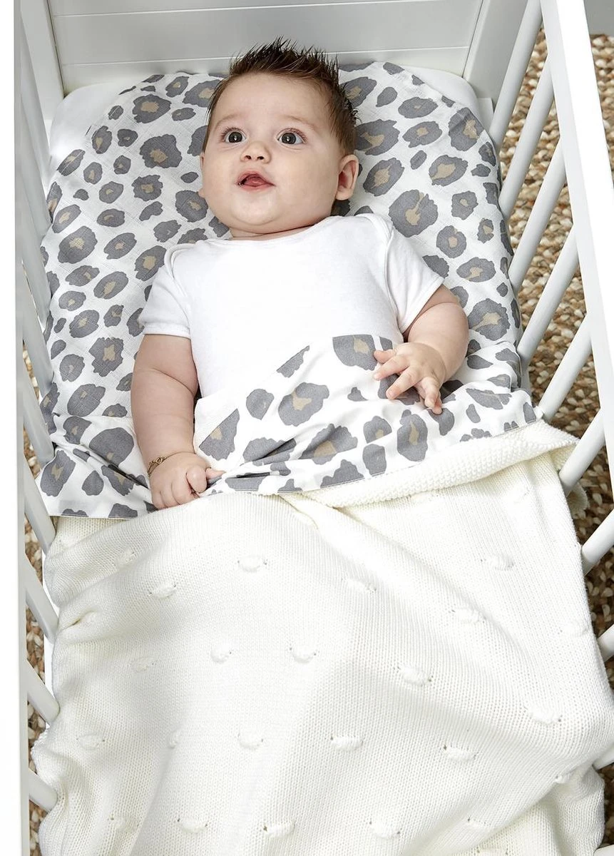 Met dit Meyco Baby Laken Panter geniet je kindje van een comfortabele nachtrust. Het lakentje voelt dankzij de 100% katoenen kwaliteit heerlijk zacht. Het natuurlijke materiaal ademt goed en neemt vocht uitstekend op. Je kindje ervaart hierdoor een droog en fris slaapklimaat. Het offwhite lakentje heeft een subtiel gekleurde panterprint op de omslagstrook, en matcht perfect met de complete Meyco Baby collectie.