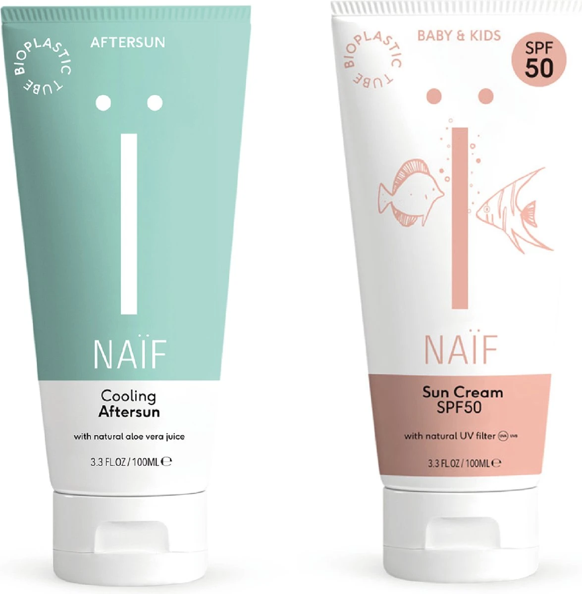 Sunscreen SPF50: Baby & Kids Sunscreen SPF50 100ml van Naïf natuurlijke huidverzorging. In de zon met je kleintje? Goed idee, maar natuurlijk beschermd. Of: natuurlijk beschermd. Naïf Care Sunscreen for Baby & Kids SPF50 beschermt de kwetsbare huid van baby’s en kinderen optimaal tegen UVA- en UVB-straling.