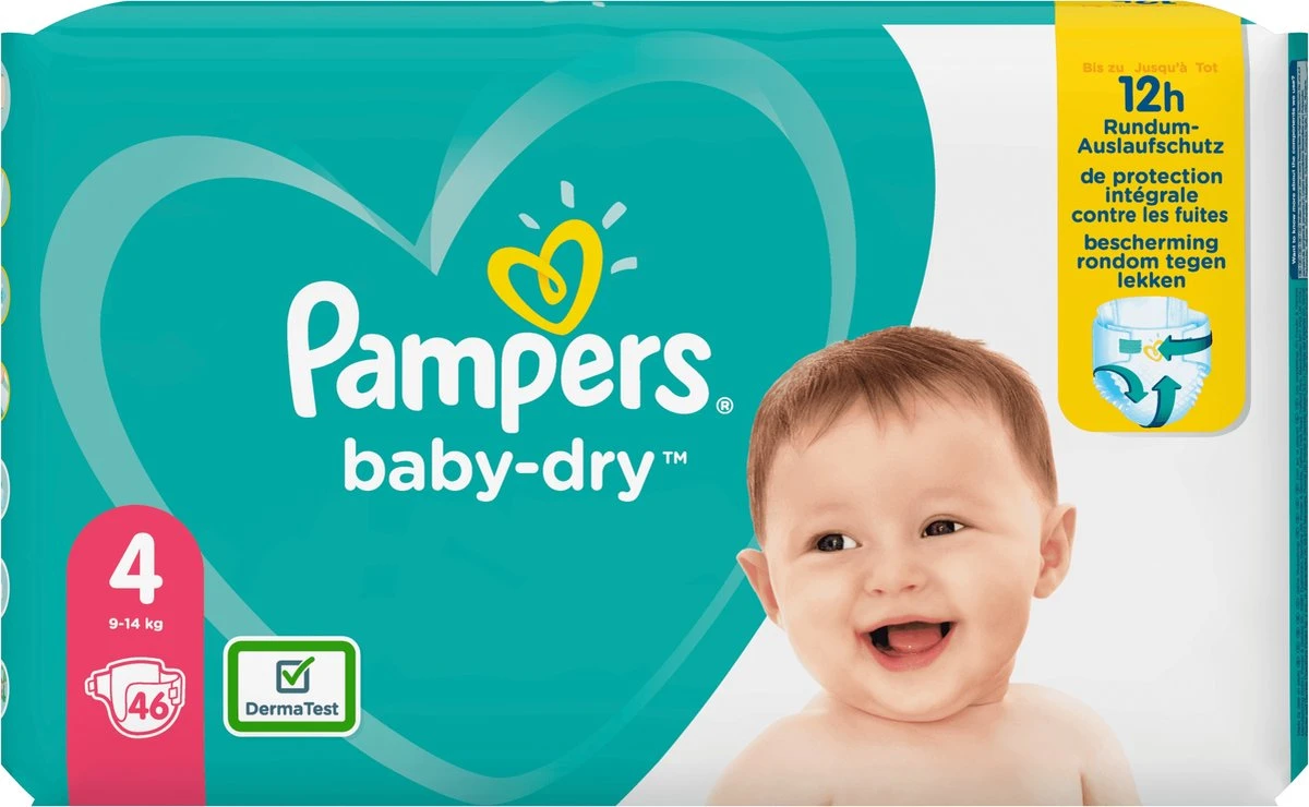 Pampers® Pampers Baby-Dry Maat 4, 46 Luiers, Tot 12 Uur Bescherming, 9-14kg