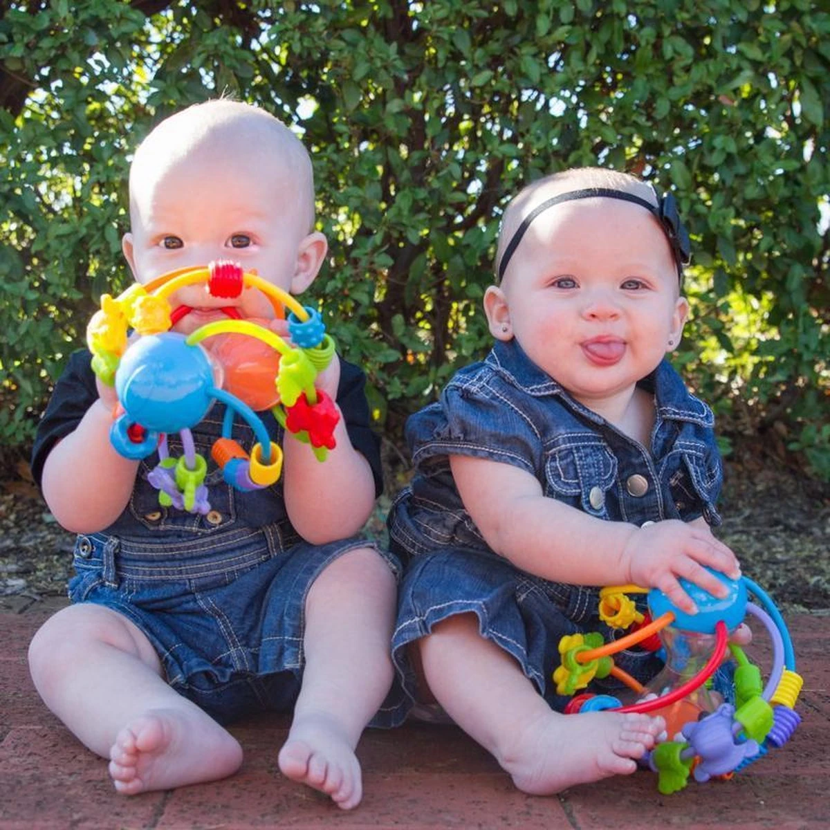 Baby’s leren door te spelen en de Speel & Leer Bal is ontworpen om dit te stimuleren. Deze leuke bal zit vol met rollend plezier. Het beschikt over een unieke plastic cilinder met ratelende ballen erin, die de baby zeker zal vermaken en die het gehoor van de baby zullen ontwikkelen. De verschillende oppervlaktes en de levendige kleuren zullen de baby zijn zintuigen activeren. Daarnaast is er een spiegel die de baby helpt met het leren over reflecties en het ontwikkelen van zelfbewustzijn.