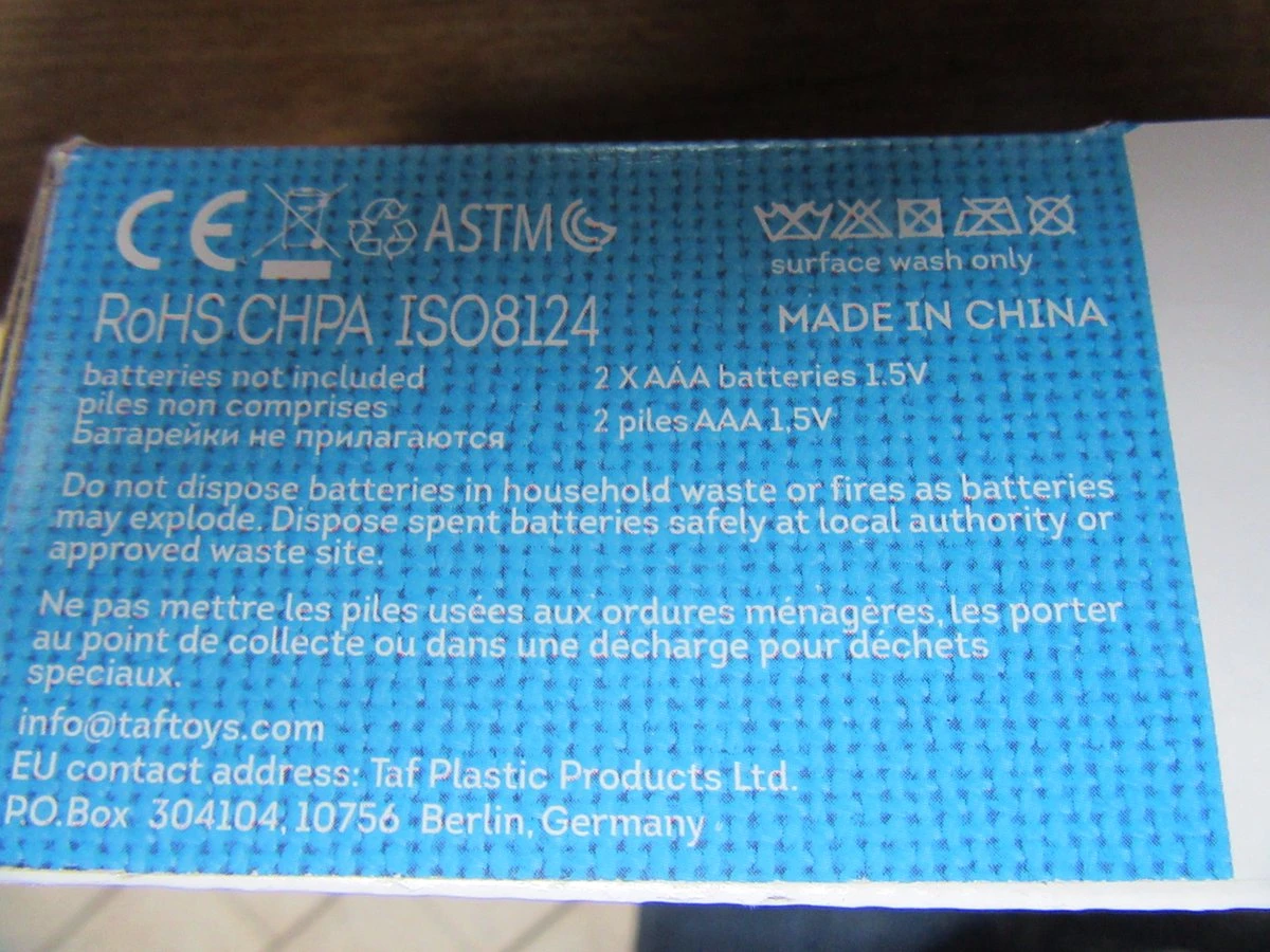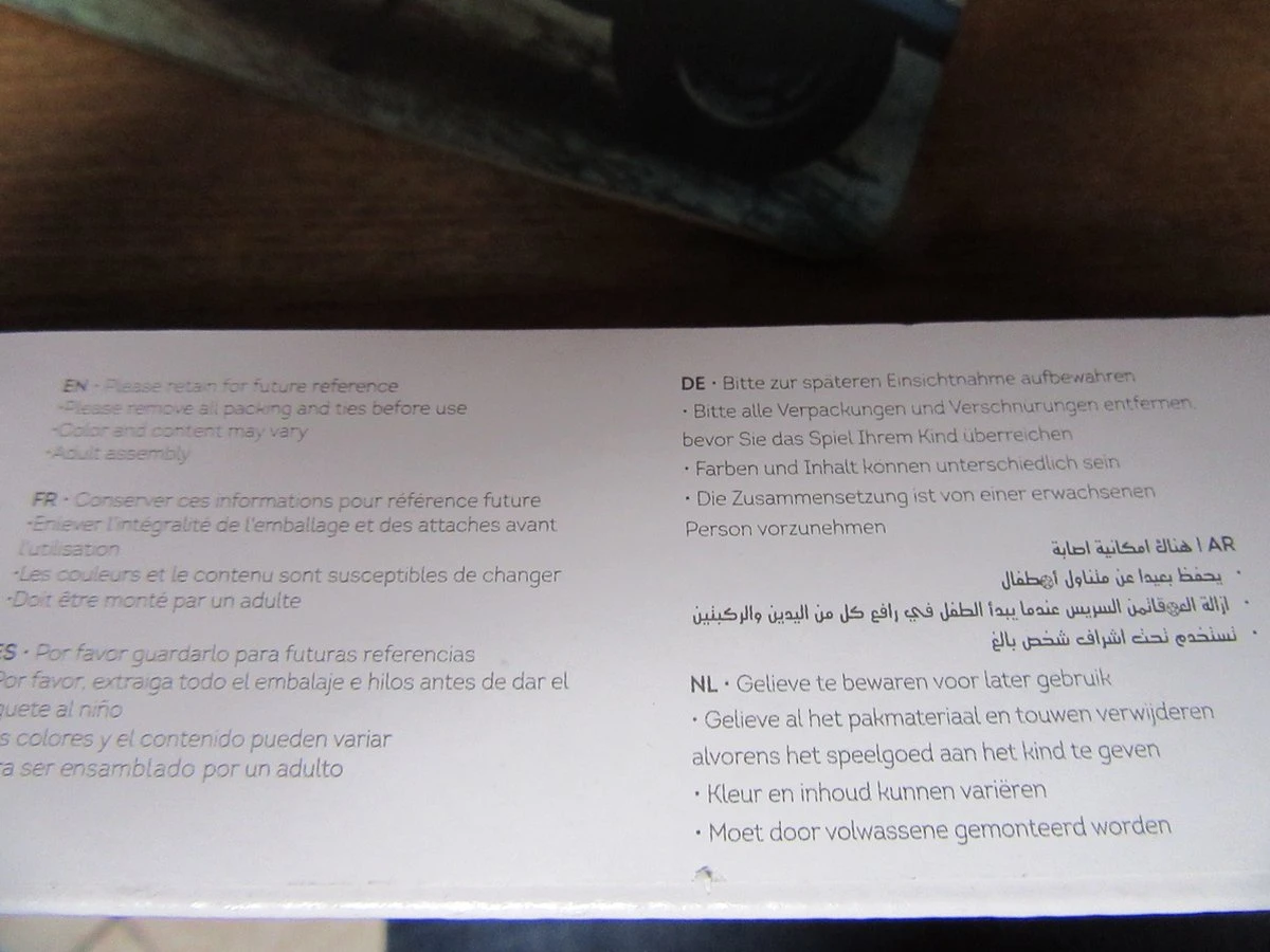 | Veiligheidswaarschuwingen | Bevat speelgoed. Toezicht door volwassenen aanbevolen. |