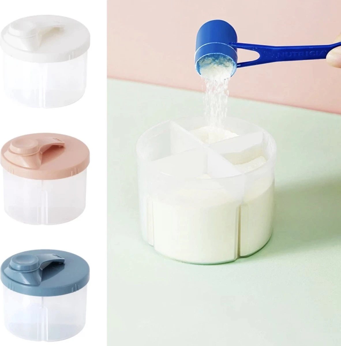 Met deze handige Without Lemon Melkpoeder doseerdoos/bewaarbakjes kun je 4 afgemeten doses melkpoeder in aparte compartimenten bewaren. Per deel kunnen er tot 8 schepjes melkpoeder schoon en droog in bewaard worden.